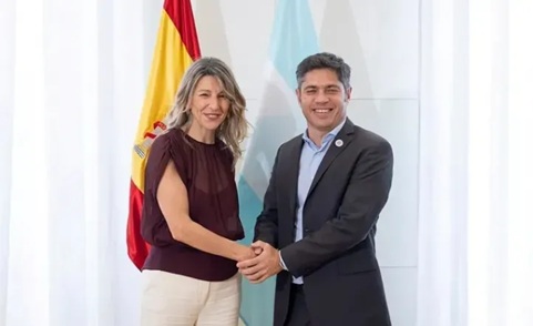 El gobernador de la provincia de Buenos Aires, Axel Kicillof, mantuvo un encuentro en Madrid con la vicepresidenta segunda de España y ministra de Trabajo y Economía Social, Yolanda Díaz, en el marco de una agenda oficial destinada a promover inversiones y cooperación productiva.